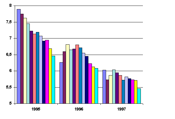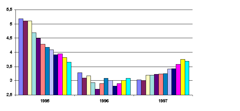 Overzicht kapitaalmarktrente 1995 t/m 1997